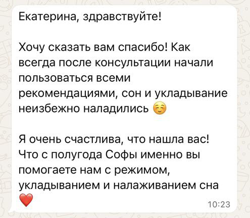 Дорогие родители, спасибо за ваши отзывы и искренние, разные, мотивирующие истории побед над бессонными ночами. Мы любим свою работу, ценим вас и каждый день стараемся, чтобы как можно больше семей высыпались.